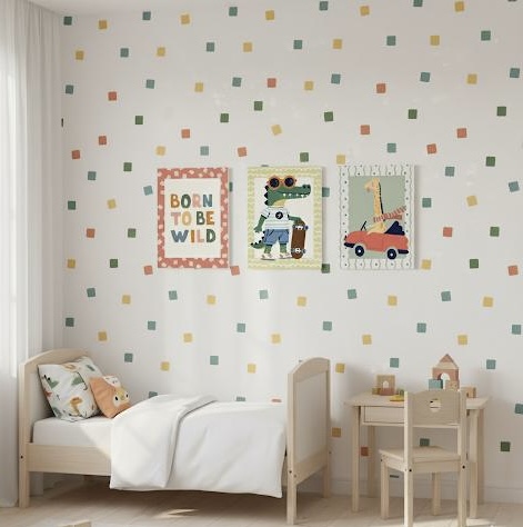 • Paredes oscuras (azul marino, verde oliva, gris intenso): Mejor con combos de fondos claros y tonos luminosos, como Estrellas o Flores